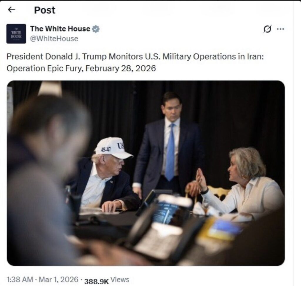 तस्वीरों में ट्रंप “USA” कैप पहने फ्लोरिडा स्थित अपने मार-ए-लागो रिजॉर्ट से स्थिति की समीक्षा करते दिखाई दे रहे हैं। उनके साथ विदेश मंत्री मार्को रुबियो, चीफ ऑफ स्टाफ सुसी वाइल्स और जॉइंट चीफ्स ऑफ स्टाफ के चेयरमैन जनरल डैन केन मौजूद थे।
