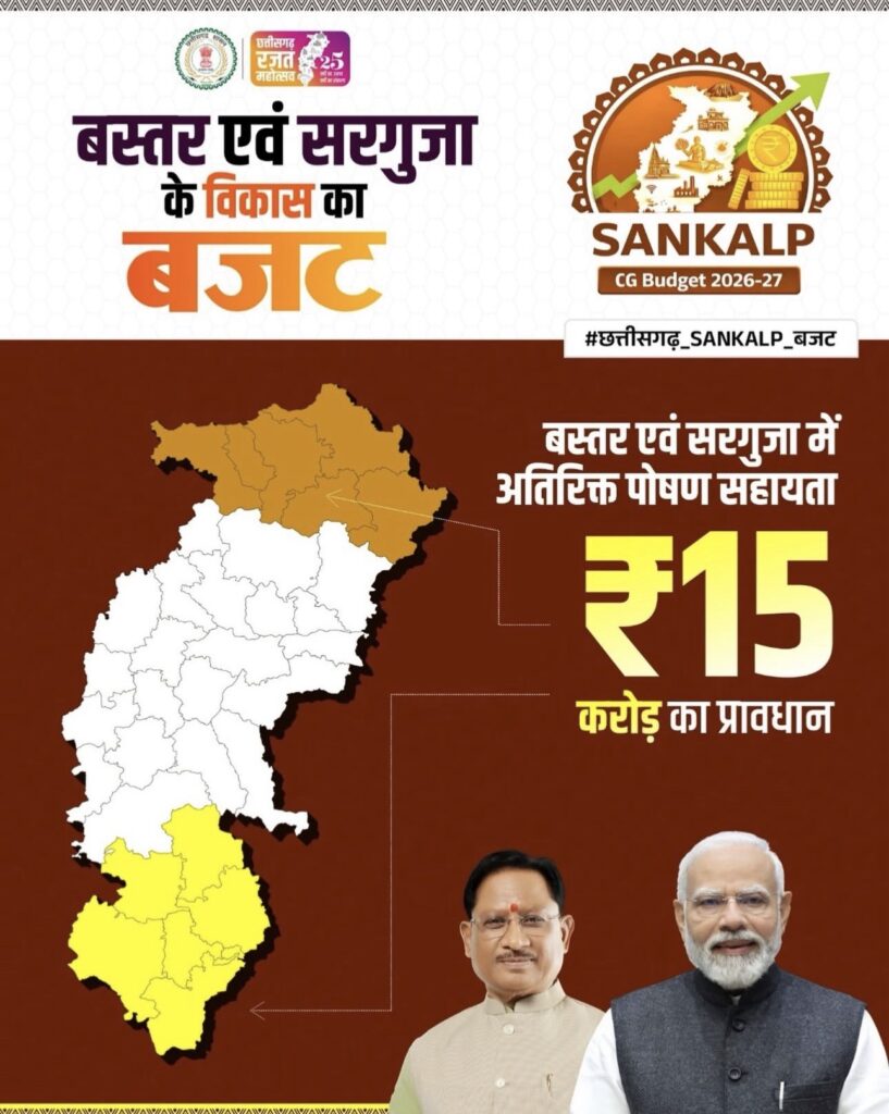 Provision of Rs 15 crore for additional nutrition aid in Bastar and Sarguja / छत्तीसगढ़ / By medianetworkcrazy@gmail.com